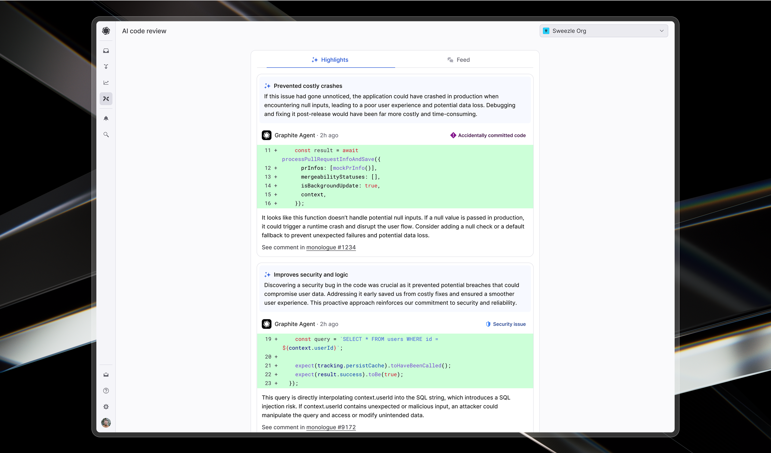 AI reviews powered by Graphite Agent help your team build better software by automatically reviewing pull requests and catching bugs before they ship.