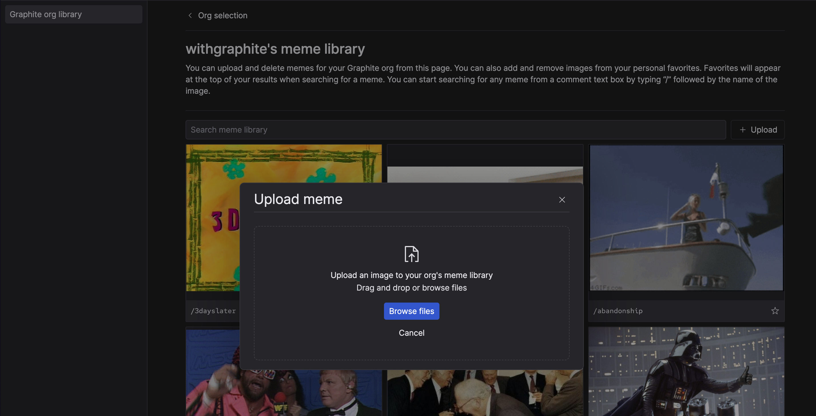 Each organization on Graphite has their own custom meme library, which you can access on theMeme Library